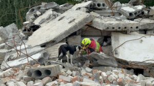 „… v rytmu diska, z dálky, z blízka, i v náručí, to všechno byly holky z naší školky nejlepší…“, takto by se dal parafrázovat prodloužený tréninkový víkend na sutině u našich přátel z Jednostki Ratownictva Specjalisticznego OSP Skarbimierz. Naši chlupatí kluci a holky (z naší školky) opravdu štěkali z dálky i z blízka a z některých úkrytů se skutečně vynášeli v náručí. Bez ohledu na rozmary počasí, které si s námi skutečně pěkně pohrálo – vedro a prašno, pak zase silný vítr, prudké ochlazení i pár dešťových kapek, to byl na 100 procent využitý čas při tréninku hledání v sutině, na stopách i při nácviku poslušnosti. A večer samozřejmě zbyl čas i na chvilku u ohně a špekáčků.